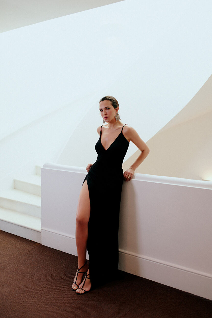 Siyah Moda Tutkusu V Yaka Örme Elbise